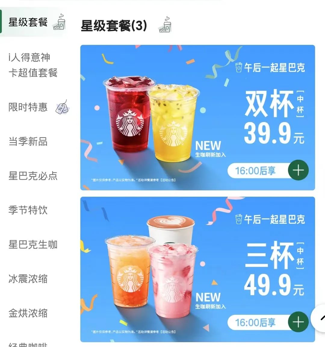 一方面,在星巴克APP、小程序里,16點(diǎn)后可用的“39.9兩杯”“49.9三杯”等優(yōu)惠券在大規(guī)模發(fā)放。