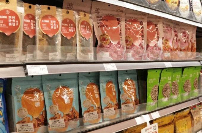 “以調(diào)味料為例,國(guó)外的貨架上大部分是單一調(diào)味品,盒馬復(fù)合調(diào)味料及燉煮包可以為海外華人更省時(shí)、省力地還原一道家鄉(xiāng)美食,川式椒麻汁、流汁麻醬拌、牛羊肉燉煮包、茶葉蛋燉煮包這些商品在國(guó)內(nèi)也是爆款,一醬成菜,符合大家做飯追求高效便捷的需求;在零食這個(gè)品類,同質(zhì)化程度比較高,華人超市貨架上大部分是傳統(tǒng)的山楂條、糖果,盒馬的酸奶山楂丁、蔓越莓山楂條、海鹽太妃糖在國(guó)內(nèi)也是網(wǎng)紅爆款,給華人消費(fèi)者提供了創(chuàng)新口味!毖菽萁榻B說。