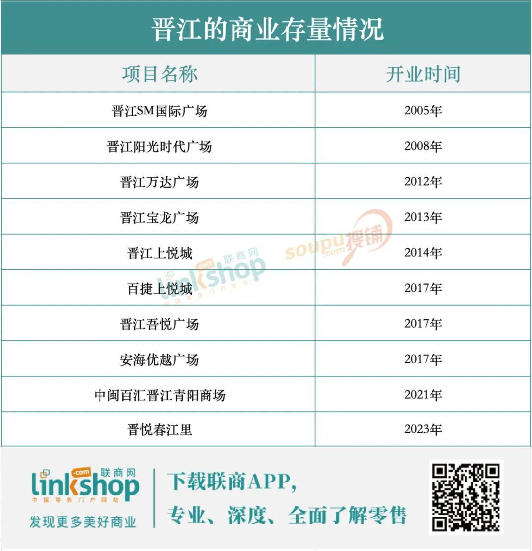 晉江方面,從2005年開始至今,也有SM國際廣場、陽光時代廣場、萬達廣場、寶龍廣場、吾悅廣場、上悅城等至少10個商業(yè)項目投入運營。目前的商業(yè)存量也是泉州區(qū)縣中數(shù)一數(shù)二的,可見晉江有著良好的營商環(huán)境。