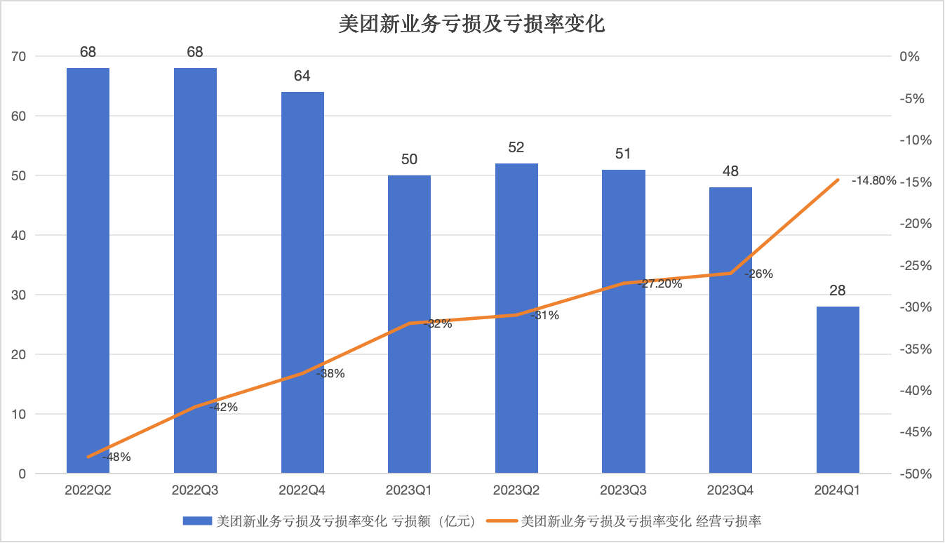 如美團(tuán)管理層所允諾的那樣,多年來拖累美團(tuán)利潤表現(xiàn)的新業(yè)務(wù)在本季度大幅扭虧,單季虧損只剩28億,同比大幅縮窄45.2%,是自入局社區(qū)團(tuán)購業(yè)務(wù)以來,最佳的季度表現(xiàn)。