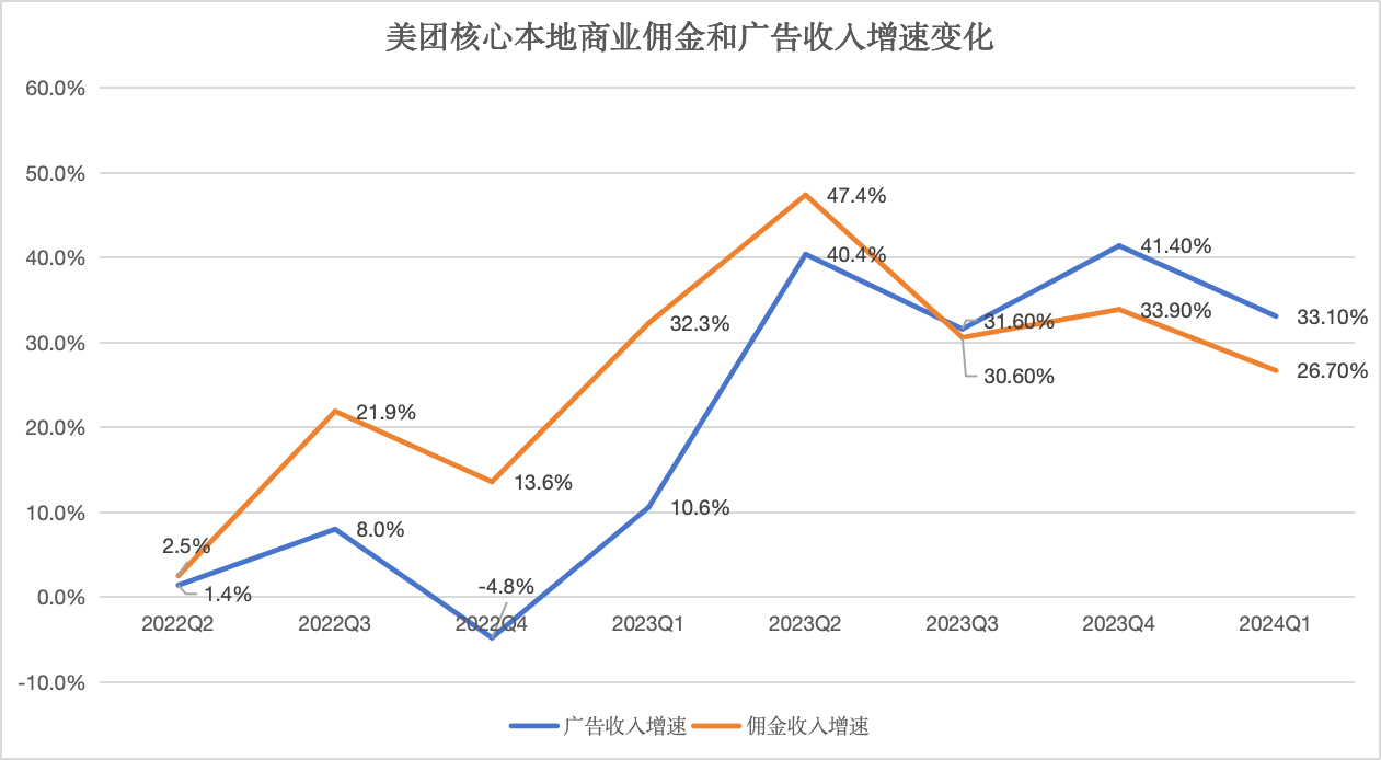 美團(tuán)核心本地商業(yè)傭金和廣告收入增速變化 來源:美團(tuán)財(cái)報(bào)
