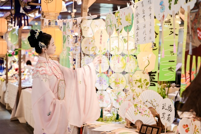 四通街與八達街兩條街市的改造靈感則來源明代特色“內(nèi)市”與“外市”,內(nèi)市設于皇城之內(nèi),流通奇珍異寶,外市則為百姓街市,此次漢服節(jié)也給消費者帶來包括“藥鋪”、“茶鋪”、“酒鋪”等特色主題攤位,打造國風品牌在內(nèi)的80+市井鋪子。