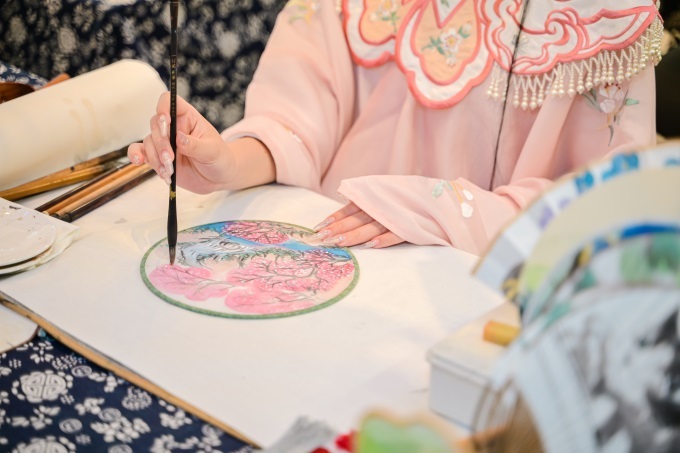 今年的互動游藝也升級為明代發(fā)展迅猛的手工業(yè)體驗,在保留錘丸、木射、投壺等傳統(tǒng)游戲的基礎上,增加拓印、制花、配香、臨帖及非遺漆扇。
