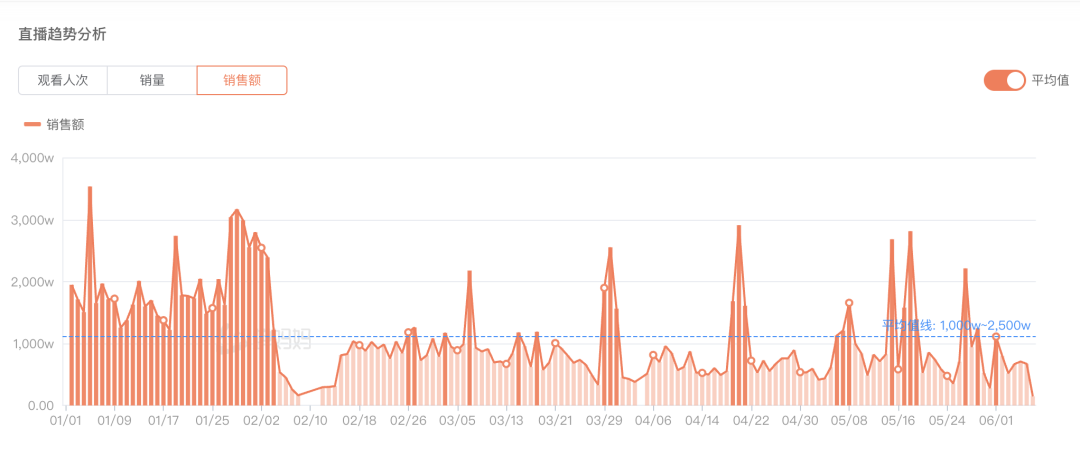 能夠讓俞敏洪不顧影響,在眾目睽睽的直播間里親口批評“亂七八糟”,東方甄選的直播間一點也不冤。驚蟄研究所從第三方數(shù)據(jù)平臺“蟬媽媽”獲悉,自2月4日起,東方甄選直播間的單日銷售額出現(xiàn)明顯下降,且大多數(shù)情況下低于其今年以來(2024年1月1日-6月7日)1000萬元-2500萬元的平均值。