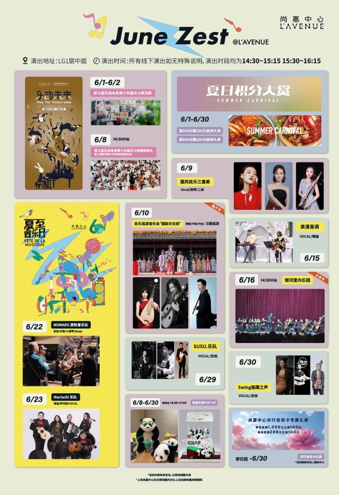 6月22日和6月23日,尚嘉中心即將迎來法國夏至音樂會,數(shù)支中法樂隊齊聚商場LG1層中庭,在音樂中碰撞出奇妙的火花,只為給熱愛中法音樂及文化的你帶來這場音樂盛會!感受中西音樂的完美碰撞,在端午假期古風(fēng)古韻的音符里見傳承之美,享受一場民樂與漢服文化融合的假期音樂會。