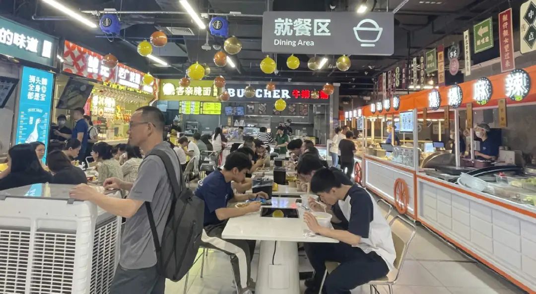午飯時分,位于保利時光里的盒馬,就餐區(qū)滿滿當(dāng)當(dāng),聚集了一大批在周邊上班的年輕人。吃面的、干飯的,大家很高效地“搓完一頓”。