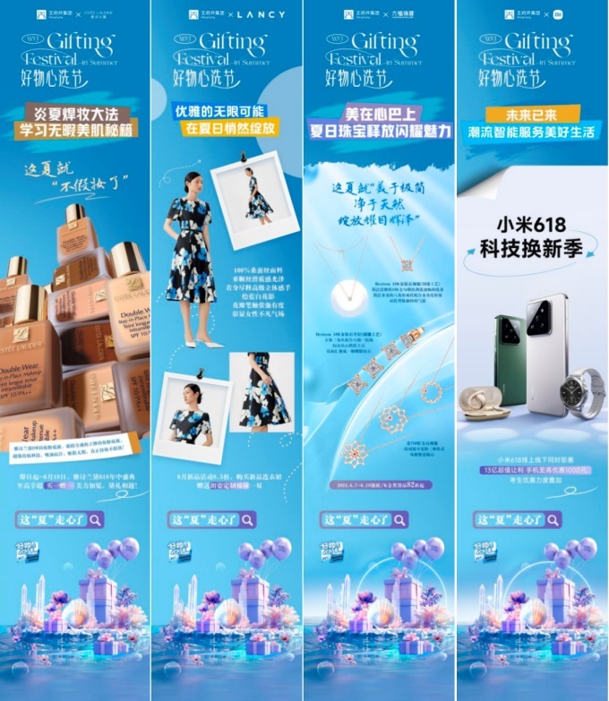 活動(dòng)期間,集團(tuán)特別邀請(qǐng)七大品類(lèi)15家重點(diǎn)品牌共創(chuàng)本次主題消費(fèi)節(jié)日,分別圍繞美妝、精品、珠寶、服飾、運(yùn)動(dòng)、家居、科技等領(lǐng)域,針對(duì)消費(fèi)者感興趣的商品,力邀蘭蔻、雅詩(shī)蘭黛、嬌韻詩(shī)、六福、周大福、COACH、MK、dvf、朗姿、歌力思、FILA、asics、夢(mèng)潔、菲仕樂(lè)、小米之家等品牌,提供豐富全面的種草推薦,結(jié)合各品牌暢銷(xiāo)商品和夏季新品,推出具有吸引力的消費(fèi)攻略。