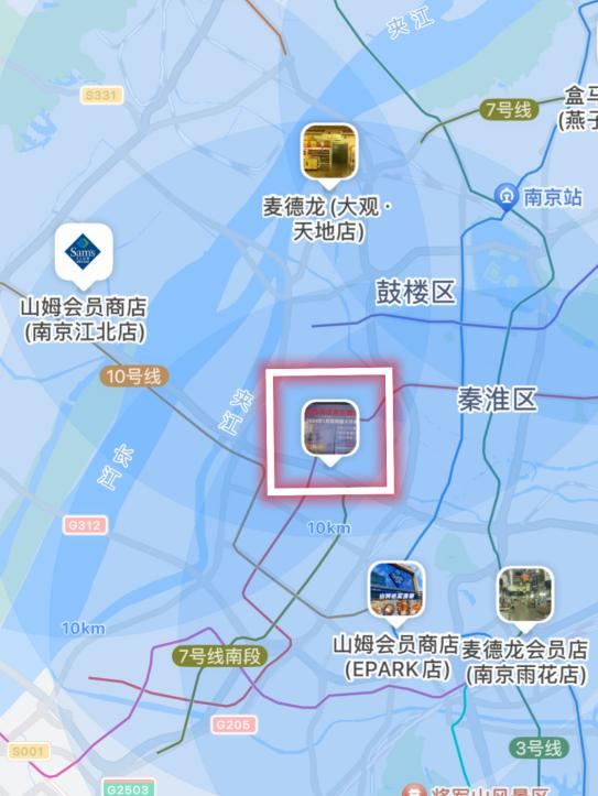 以10公里的影響范圍看,M會(huì)員商店需要應(yīng)對(duì)來自2家麥德龍、2家山姆的競(jìng)爭(zhēng),尤其是雨花臺(tái)區(qū)的山姆,其與M會(huì)員商店的距離僅為5公里,這無疑給M會(huì)員商店帶來了巨大的壓力。