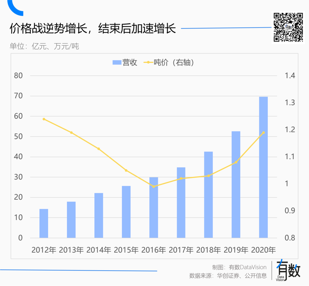 2012-2016年,安井的單噸收入從1.24萬元降至0.99萬元,但火鍋料品類的整體收入增長118%,復(fù)合增長率高達(dá)22%,領(lǐng)先海欣(6%)與惠發(fā)(-0.03%)[4]。