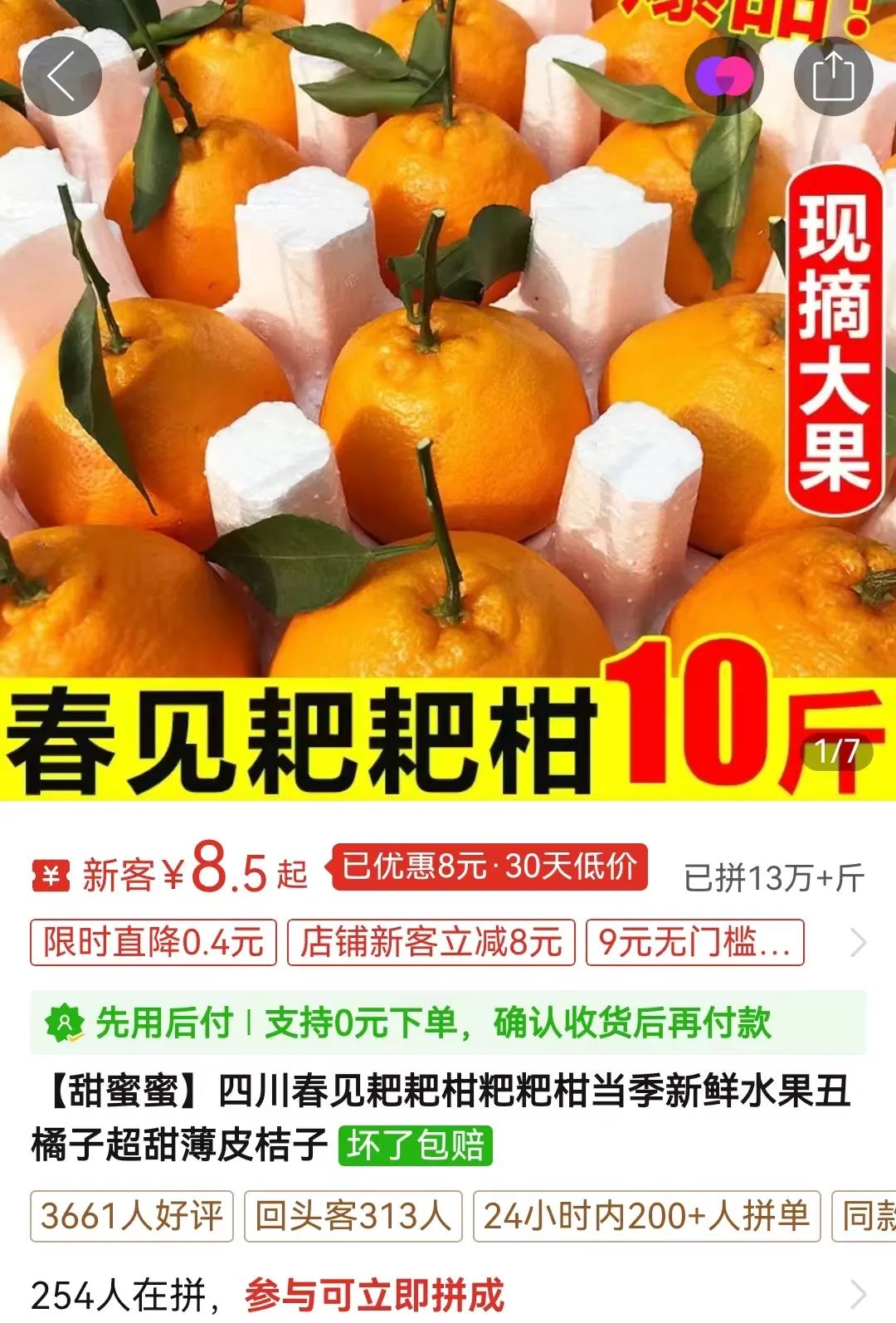 還有消費(fèi)者反饋,在購(gòu)買砂糖橘時(shí),看到宣傳頁(yè)面上標(biāo)價(jià)14.6元10斤的砂糖橘,滿心歡喜地下單,結(jié)果收到的卻是1斤試吃裝。