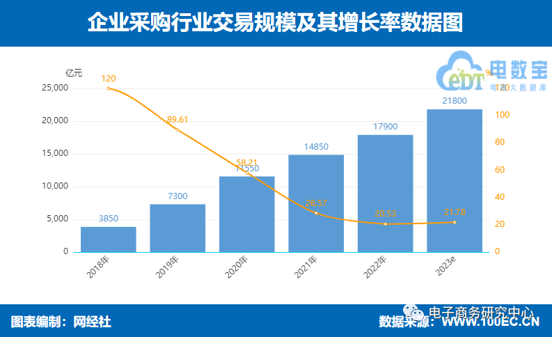 據(jù)網(wǎng)經(jīng)社統(tǒng)計,去年上半年,國內(nèi)企業(yè)采購電商市場規(guī)模達10780億元,預計全年市場規(guī)模達21800億元。