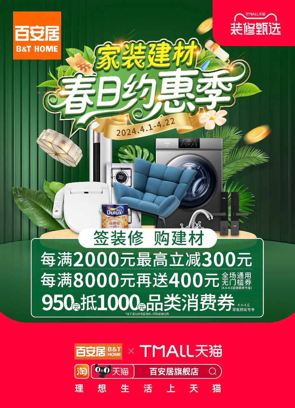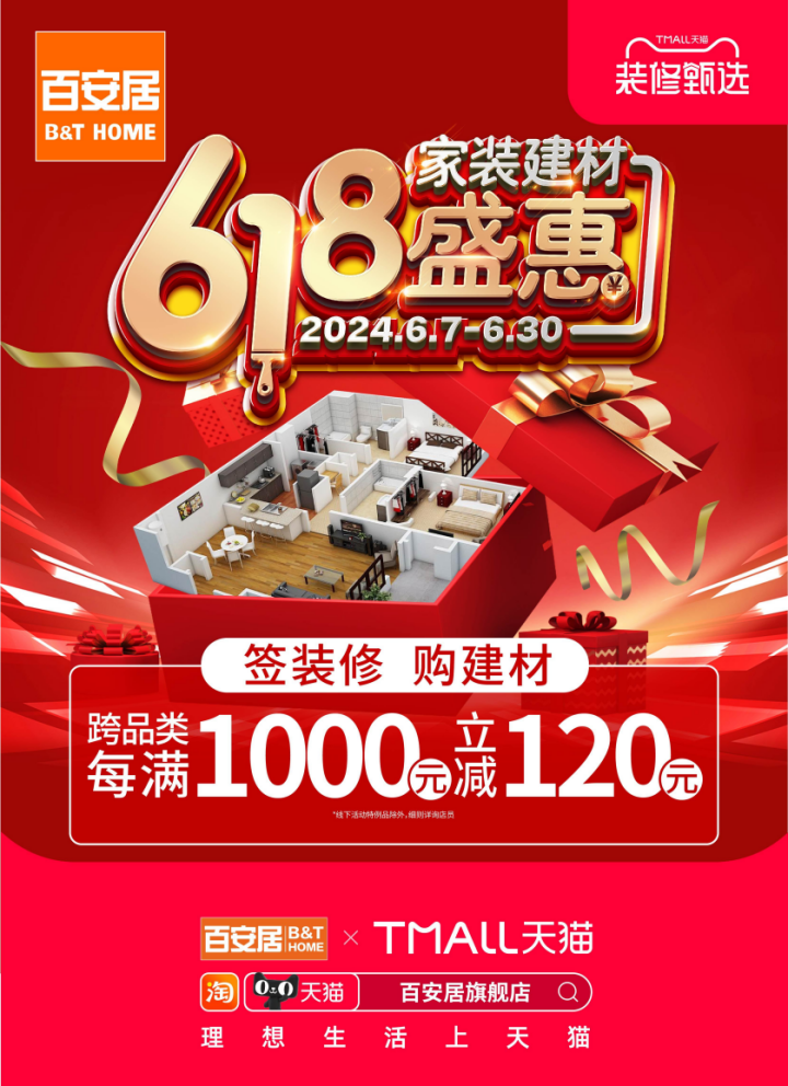 隨著618年中大戰(zhàn)打響,各行業(yè)迎來了6月市場爭奪戰(zhàn)。百安居洞察市場行情、順應(yīng)消費需求,重磅打造家裝建材618盛惠活動,全方位升級消費體驗,并為消費者的家裝體驗增添更多保障。