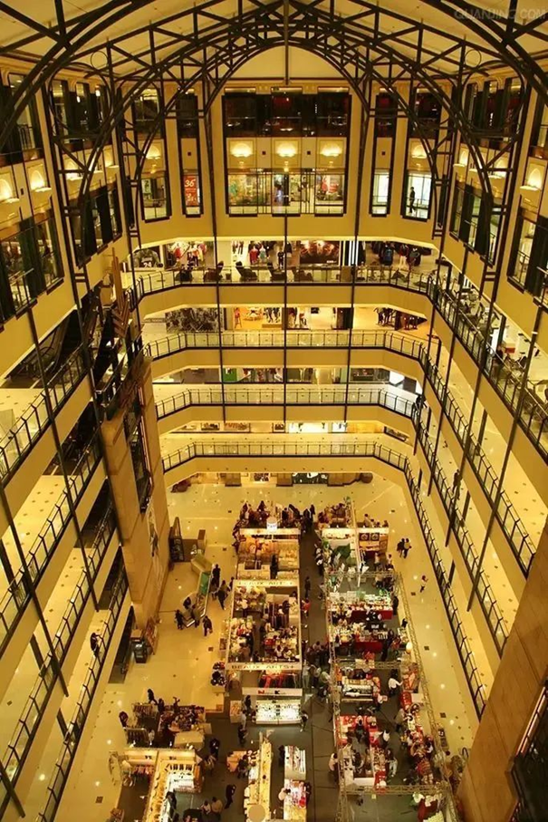 有一個商場,十分雄偉,在開業(yè)那年及至后來的很多年,這個商場引領(lǐng)了“購物中心”在那個區(qū)域的先河,獨占風(fēng)騷三五年。這個商場有個很漂亮的中庭,中庭的一面墻頂部有個很漂亮的鐘。(圖二)