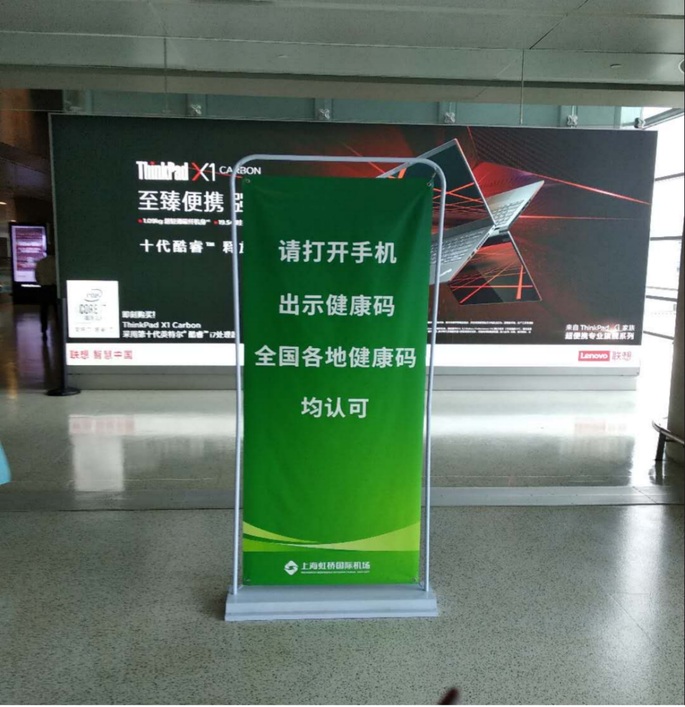 令筆者感到暖心的是這段文字,“全國各地健康碼均認(rèn)可”,當(dāng)時想,如果全國各地的機場、高鐵站都有這樣一段文字,該方便多少這個期間還在奔波的人!于是拿出手機留下了這個畫面(不知這個易拉寶虹橋機場還保留在庫房否?)