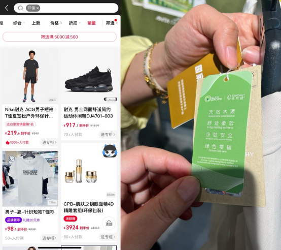 “我們跟國家地理合作的系列新品,使用了碳中和纖維,親膚柔軟又綠色環(huán)保,很多顧客都是線下來親自試穿體驗(yàn)后,對品質(zhì)認(rèn)同度很高”,銀泰百貨安踏柜臺的導(dǎo)購介紹到。在喵街APP上,服飾、箱包和美妝個護(hù)等品類上線了多個品牌的環(huán)保概念產(chǎn)品,已有不少消費(fèi)者“嘗鮮”,其中一款T恤超過1000人付款。