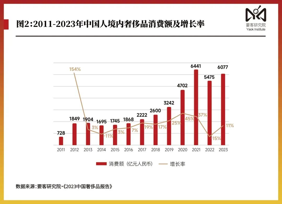 據(jù)要客研究院發(fā)布的《中國奢侈品報(bào)告》指出,2023年中國奢侈品消費(fèi)呈現(xiàn)強(qiáng)勁復(fù)蘇態(tài)勢,同比增長9%至10420億元,占據(jù)全球奢侈品消費(fèi)市場的38%。