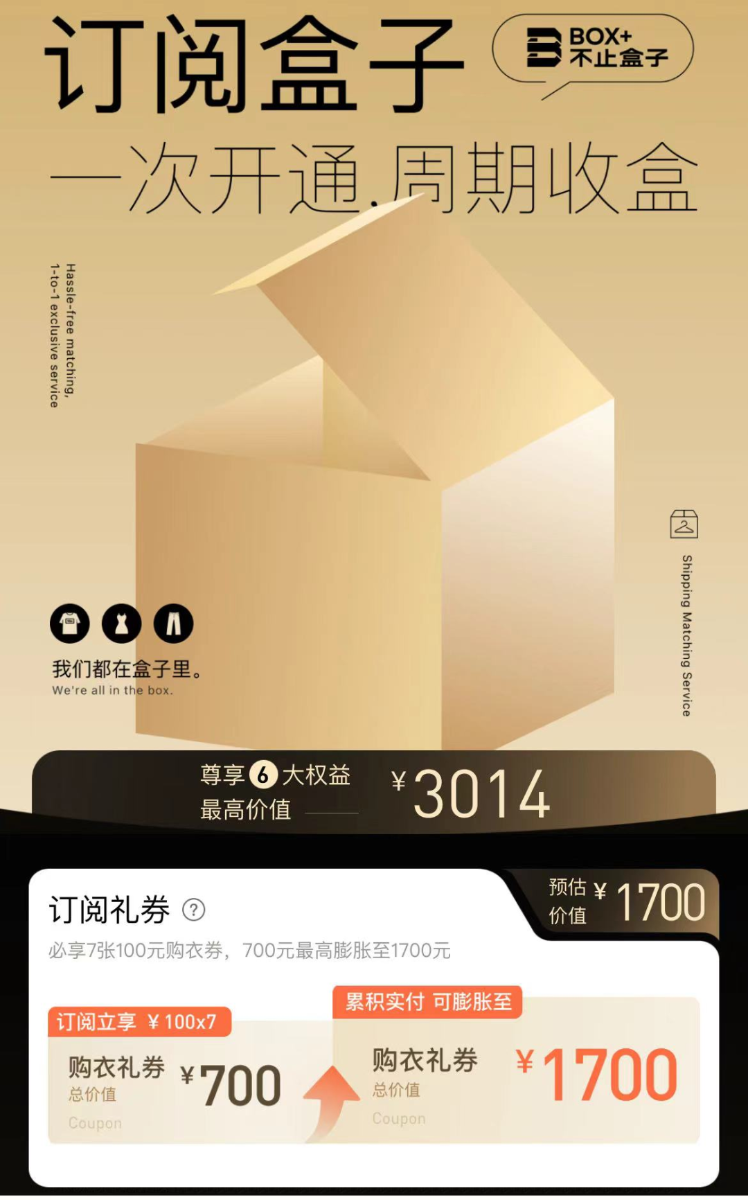 為了精細(xì)化運(yùn)營會員體系,江南布衣推出的“BOX+不止盒子”小程序,僅需199元或3888積分,即可尊享一年六次先試后買的會員特權(quán)。并且基于每位會員的獨(dú)特標(biāo)簽,導(dǎo)購會精心挑選出當(dāng)季的主推款或預(yù)測爆款,以“盲盒”的形式寄送給會員,盒子內(nèi)含3-5套精心搭配的衣物,若不滿意,退換貨的往返運(yùn)費(fèi)全由品牌承擔(dān)。