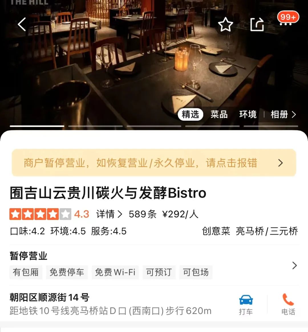 iBrandi品創(chuàng)獲悉,由海底撈持股75%的品牌——「囿吉山云貴川炭火與發(fā)酵Bistro」(以下簡稱:囿吉山)目前已經(jīng)閉店。根據(jù)大眾點評網(wǎng)友評價,4月28日是該品牌營業(yè)的最后一天。