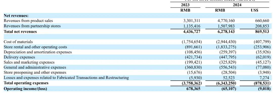 瑞幸2024年第一季度財(cái)報(bào) 圖源/瑞幸財(cái)報(bào)