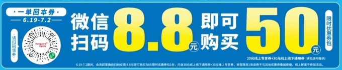 據(jù)悉,6月17日到6月30日期間,每周一到周四會員到店消費任意金額即可得10元現(xiàn)金券,在周四到周日消費滿50即可抵用。6月19日-7月2日期間掃碼領(lǐng)券更優(yōu)惠,微信掃碼8.8元即可購買50元券包,內(nèi)含30元線上線下通用券+20元線上專享券,進店消費一單回本。