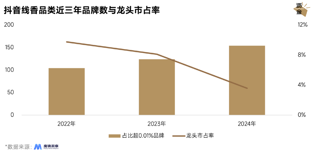 抖音線香品類近三年品牌數(shù)與龍頭市占率