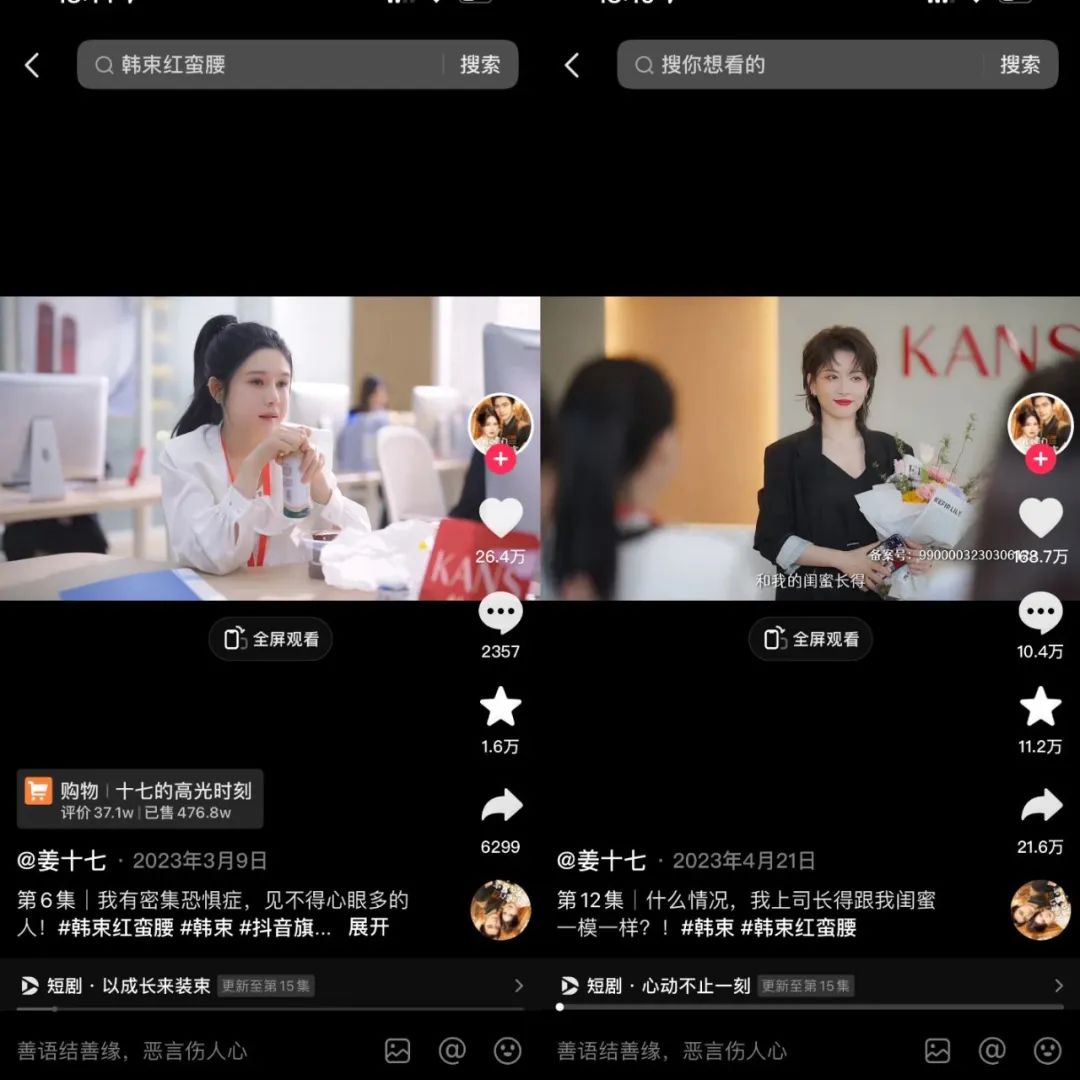 韓束與抖音達(dá)人@姜十七合作短劇 圖源:抖音App