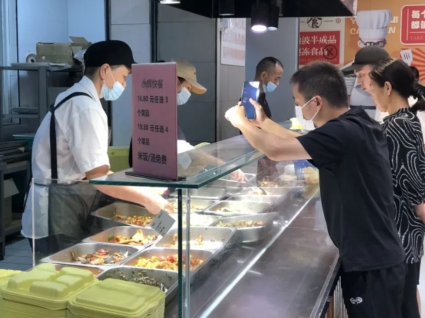 6月某工作日晚餐時(shí)間,該永輝食堂供應(yīng)著17個(gè)菜品,16.8元任選3個(gè)菜品,19.8元任選4個(gè)菜品。在大眾點(diǎn)評(píng)上,該永輝食堂曾收獲數(shù)條評(píng)論。消費(fèi)者普遍認(rèn)為,其性價(jià)比高、服務(wù)熱情、價(jià)格實(shí)惠,但味道一般。