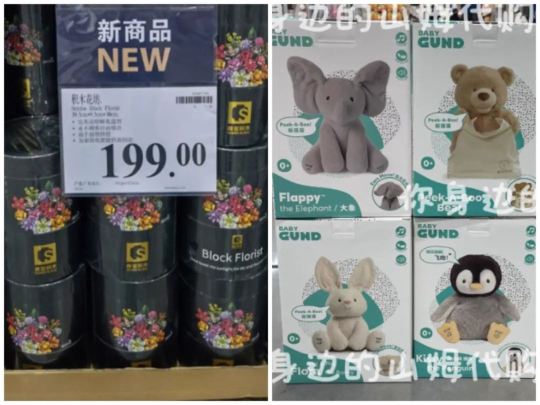 第三,除了上述品類,山姆代購店的玩具也賣得很好。這些玩具普遍是大人、小孩都能玩的積木、安撫玩偶,主打一個精細化養(yǎng)娃和成年人的小確幸都拿捏。
