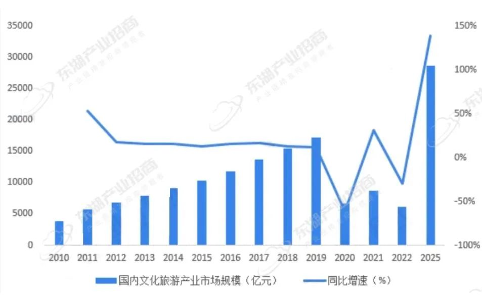 2022年,國(guó)內(nèi)文化旅游產(chǎn)業(yè)市場(chǎng)規(guī)模為6120億元,約2019年市場(chǎng)規(guī)模的35.6%。根據(jù)預(yù)測(cè),2025年國(guó)內(nèi)文化旅游產(chǎn)業(yè)市場(chǎng)規(guī)模有望達(dá)28620億元,較2019年增長(zhǎng)近66.5%。