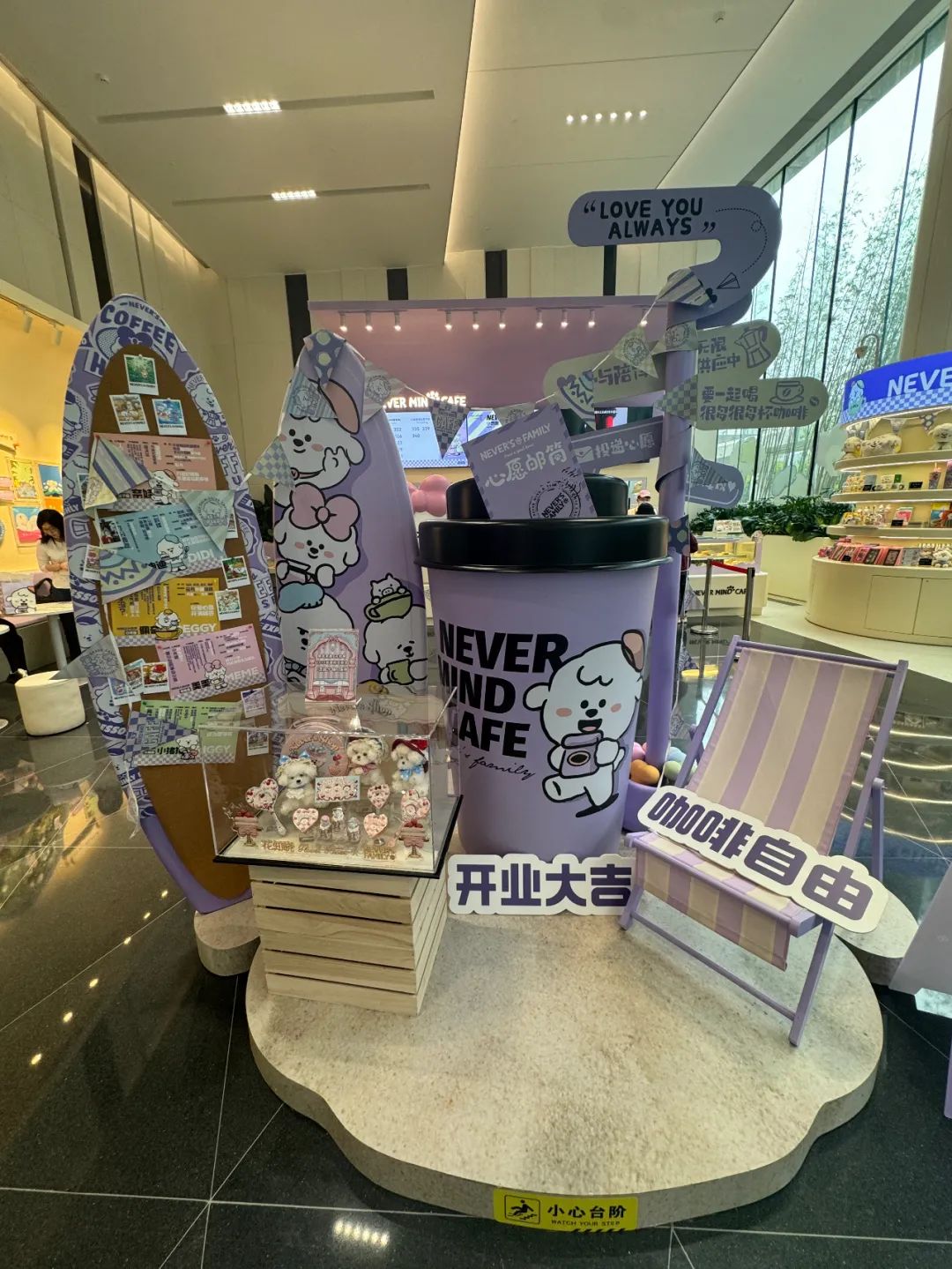 4月18日,奈娃家族咖啡實(shí)體店NEVER MIND CAFE(以下簡稱“小奈咖”)首店在美ONE公司大堂亮相。