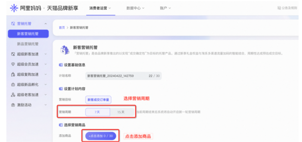 比如阿里媽媽的“營(yíng)銷(xiāo)托管”產(chǎn)品,可以“先達(dá)成成交再支付營(yíng)銷(xiāo)推廣費(fèi)”,也就是支持商家先設(shè)置好投放目標(biāo),在交易訂單完成后才需支付對(duì)應(yīng)的營(yíng)銷(xiāo)費(fèi)用。