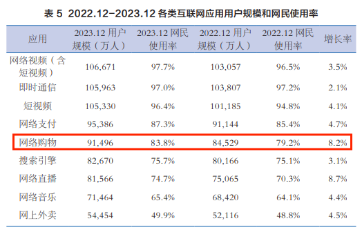 但增長(zhǎng)總歸是有止境的,CNNIC發(fā)布的第53次《中國(guó)互聯(lián)網(wǎng)絡(luò)發(fā)展?fàn)顩r統(tǒng)計(jì)報(bào)告》顯示,截至2023年12月,我國(guó)網(wǎng)民規(guī)模10.92億人,其中網(wǎng)購(gòu)用戶9.15億人。除去消費(fèi)能力有限的兒童和老人等,電商用戶整體增長(zhǎng)早已觸及天花板,更別談獲取新用戶了。