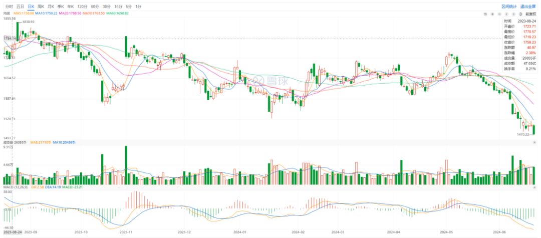 業(yè)績持續(xù)惡化,開云集團(tuán)股價(jià)從2023年7月527美元/股狂跌至今年的320.1美元/股,跌幅比例近40%。拉長時間線來看,近兩年開云集團(tuán)股價(jià)一直處在下行區(qū)間。