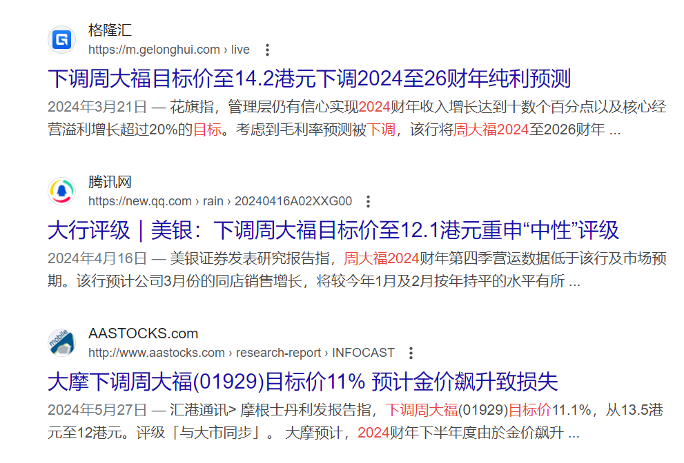 出手較晚的大摩,發(fā)力最狠,直接將周大福目標(biāo)價(jià)砍到僅剩12港元,相較16.45港元的高點(diǎn),約等于75折促銷。