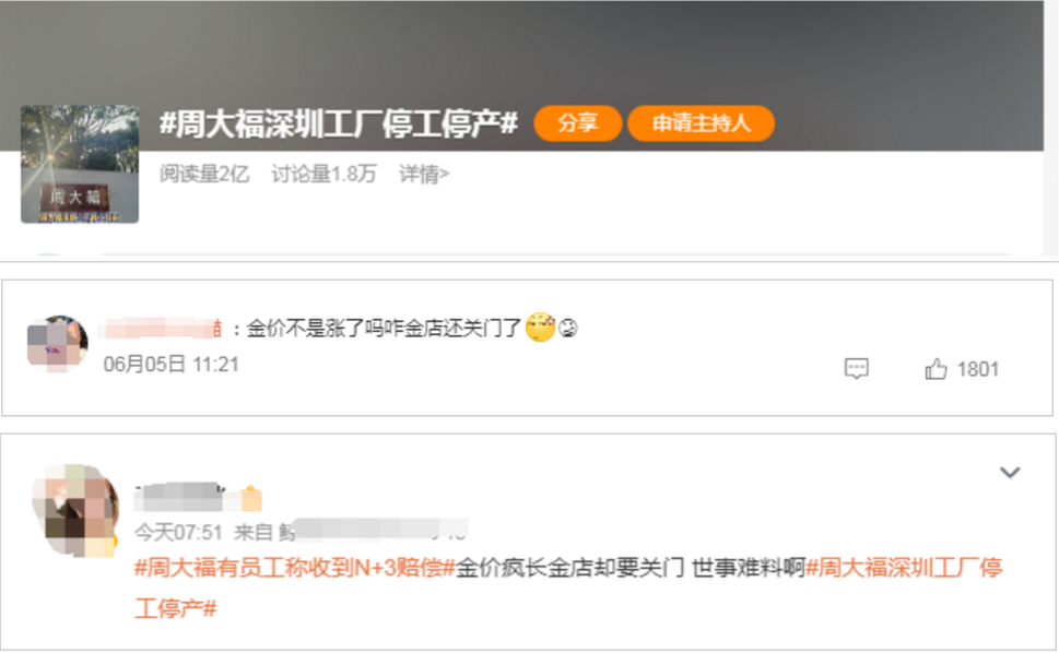 而今,金價(jià)漲勢(shì)復(fù)現(xiàn)往日,等待周大福的卻只有冷淡的機(jī)構(gòu),“深圳工廠停產(chǎn)停工”的熱搜話題,以及消費(fèi)者的一句嘆息:金店關(guān)門,世事難料。