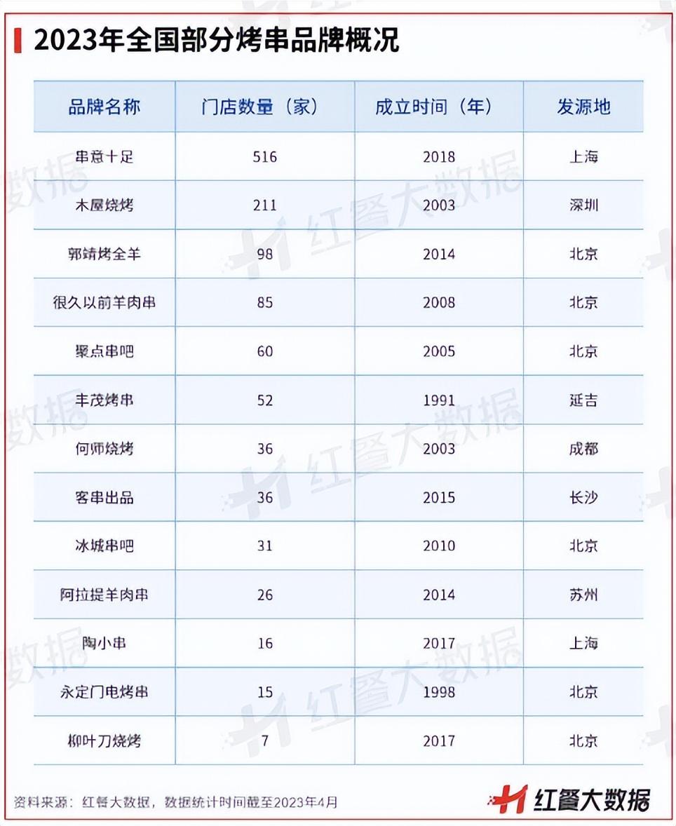 木屋燒烤無疑屬于這“10.9%”之列,據(jù)“紅餐大數(shù)據(jù)”顯示,截至2023年4月,木屋燒烤擁有211家門店,排到第二名。