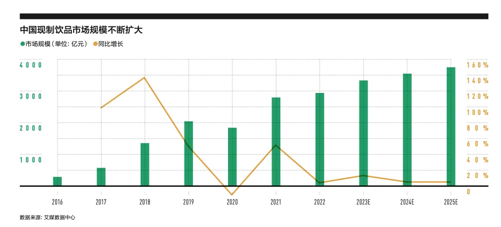但新茶飲也確實(shí)逐漸增長(zhǎng)乏力,進(jìn)入了存量競(jìng)爭(zhēng)。像早期的一點(diǎn)點(diǎn)、COCO解決的是奶茶從無到有的問題,它們跑出來靠的是標(biāo)準(zhǔn)化和團(tuán)隊(duì);而從喜茶入場(chǎng)開始,正式撬動(dòng)了用新鮮水果茶、芝士奶蓋茶的新茶飲世界,茶飲規(guī)模也從2016年的幾百億增長(zhǎng)到2022年的近3000億。這種就屬于極大的創(chuàng)新。