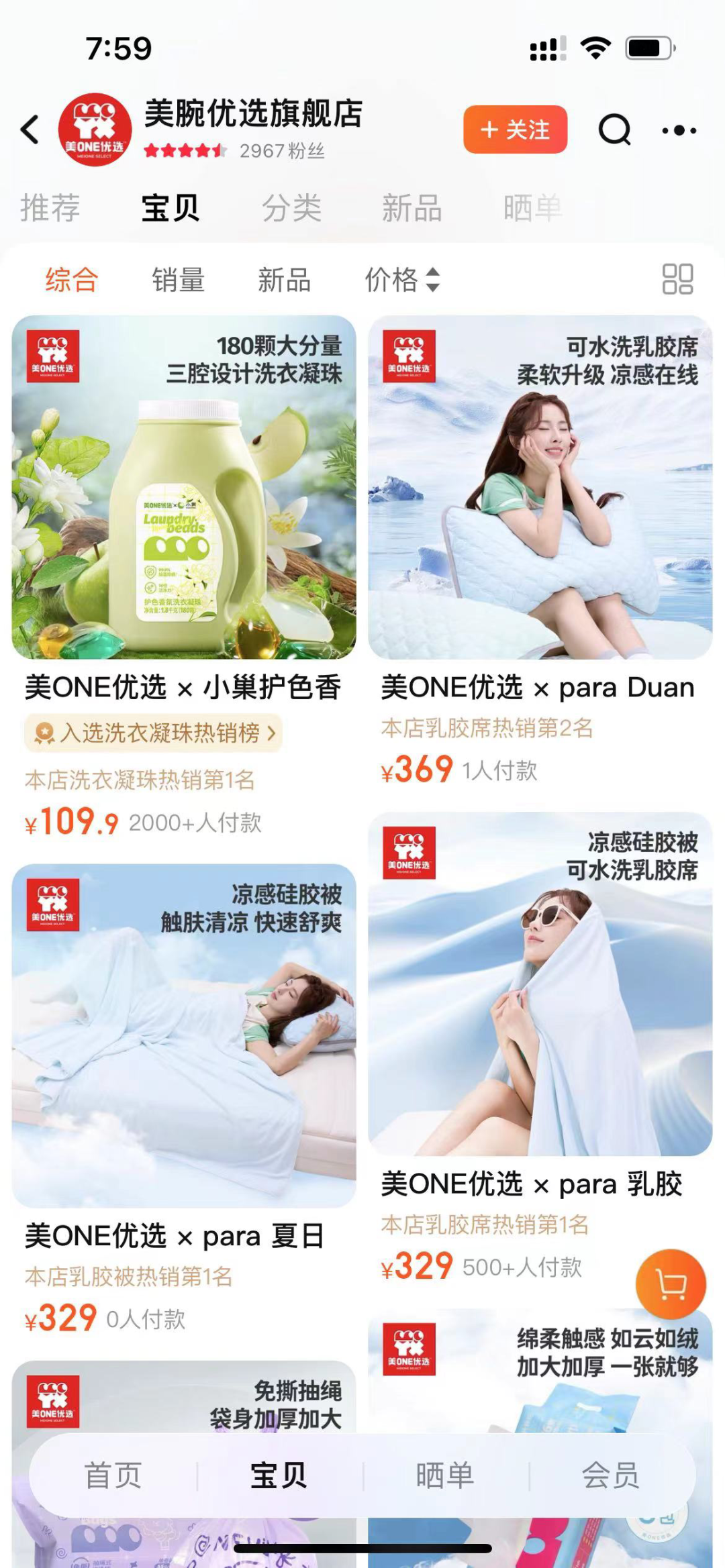 美腕優(yōu)選旗艦店上線不到兩周,靠5款產(chǎn)品吸引近3000名粉絲。其中,一款李佳琦推薦的洗衣凝珠銷量最高,超2000件。