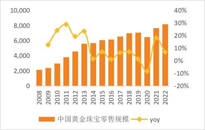 中國黃金珠寶市場規(guī)模;來源:天風證券