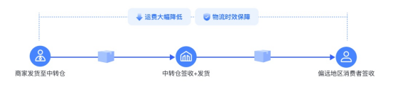 除了自選快遞,在去年10月,抖音還針對偏遠(yuǎn)地區(qū)推出了中轉(zhuǎn)倉模式,顯著降低了商家向偏遠(yuǎn)地區(qū)發(fā)貨的物流成本,同時保證了配送效率。