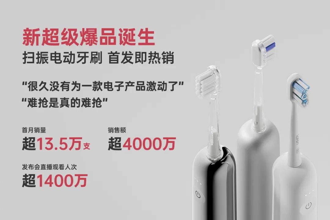 結(jié)合官方信息來(lái)看,徠芬掃振電動(dòng)牙刷產(chǎn)品確實(shí)一鳴驚人。上市首月,徠芬掃振電動(dòng)牙刷銷量超13.5萬(wàn)支,銷售額超4000萬(wàn)元。