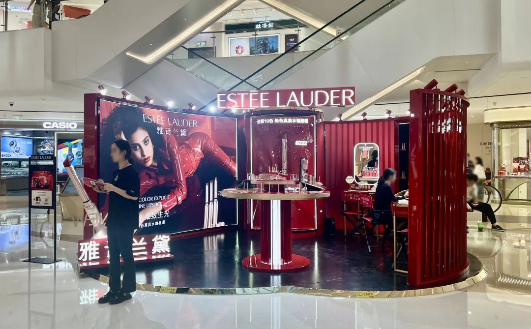 《FBeauty未來跡》此行著重觀察其美妝日化區(qū),身臨其中體驗(yàn)其運(yùn)營特色。還未進(jìn)店,一個(gè)有意思的發(fā)現(xiàn)是,胖東來如此人氣甚至引來國際品牌來“蹭”流量:在商場(chǎng)通往超市的主動(dòng)線上,雅詩蘭黛布置了一個(gè)新品唇膏主題的限時(shí)快閃店,吸引顧客打卡領(lǐng)取小樣。