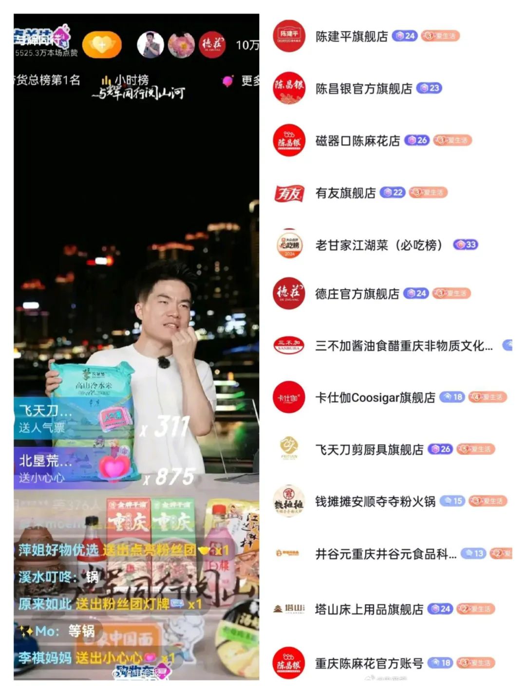 值得一提的是,在這次直播活動(dòng)中,人氣禮物榜單前幾十名全被商家占據(jù)。商家們紛紛自發(fā)刷禮物打榜,上演了一場(chǎng)激烈的“爭(zhēng)霸賽”。