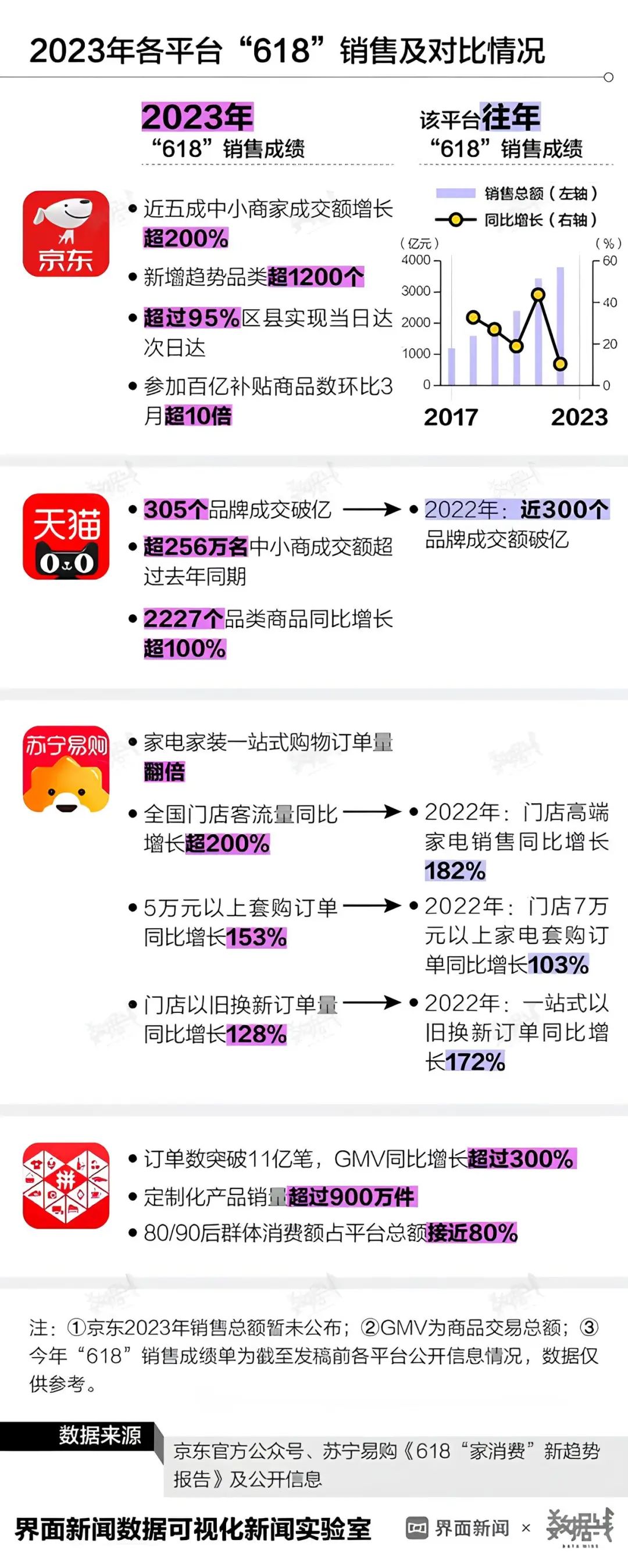 2023年各平臺“618”銷售及對比情況