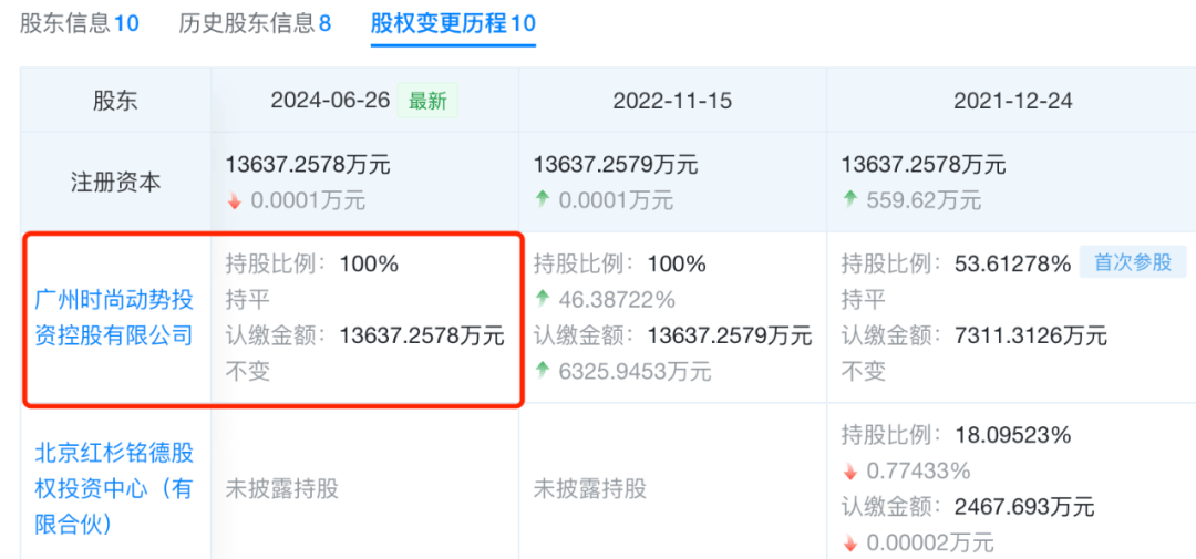 2022年11月,數(shù)名股東集體退出了快尚時裝,由原先多股東持股模式轉變?yōu)閱我还蓶|全資控股,調(diào)整完成后廣州獅子座控股有限公司持有快尚時裝100%的股份。
