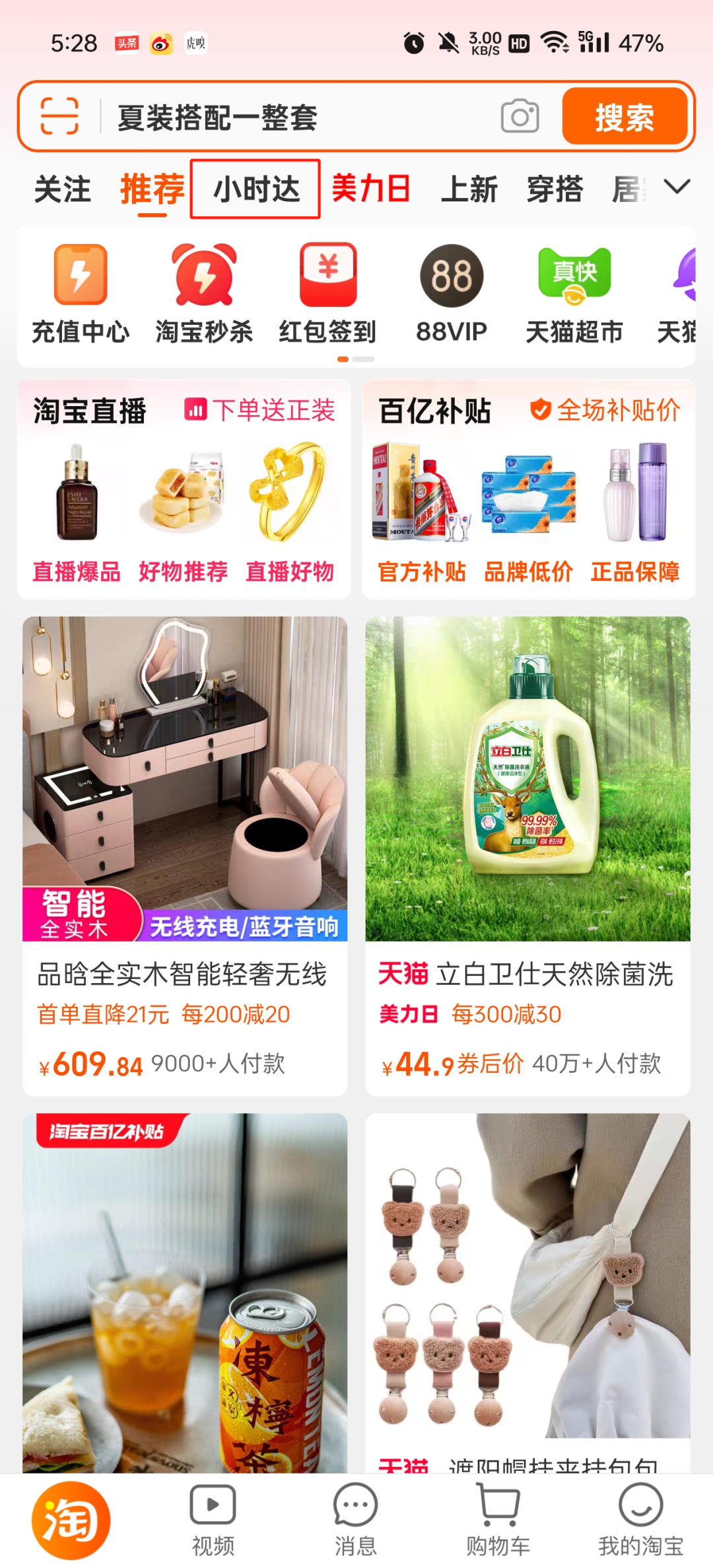 7月3日,淘寶小時(shí)達(dá)業(yè)務(wù)升級(jí),在最新版的淘寶App首頁(yè),頂部Tab為“小時(shí)達(dá)”新增了一級(jí)流量入口。把即時(shí)零售業(yè)務(wù)送上首頁(yè)的不僅只有淘寶,更早一些時(shí)候,京東同樣將代表即時(shí)零售業(yè)務(wù)的“京東秒送”送上首頁(yè)。