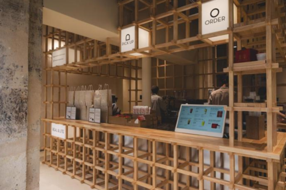 呼應茶室這一極具東方韻味的空間概念,喜茶巴黎觀賽茶室整體由縱橫交錯的木質結構和暖黃色的燈箱搭建組成。富有禪意的極簡造型與溫暖的光線,在巴黎營造出東方式的宜古宜今飲茶空間。消費者可以錯落入座,觀賽飲茶,感受在其中流淌的清新茶香與友好的交流氛圍。