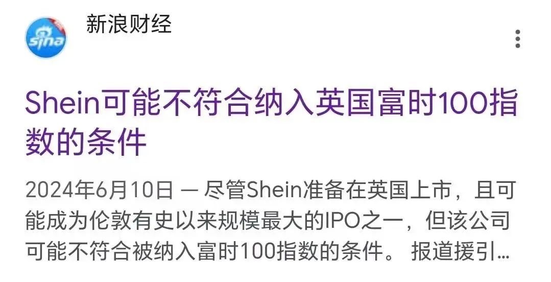 然而,倫敦上市或再次遇阻,6 月 6 日,新浪財(cái)經(jīng)報(bào)道稱,快時(shí) Shien 的英國 IPO 可能不符合納入富時(shí) 100 指數(shù)的資格,因?yàn)橛惩庾?cè)的公司其自由流通股的比例最低必須達(dá)到 25%。