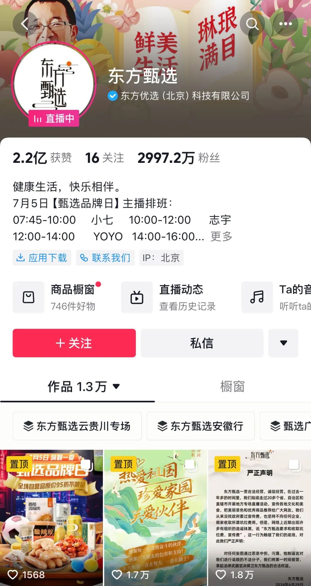 “618大促”的失利,更是將這份焦慮推向了高潮。在這場年度電商盛宴中,東方甄選未能躋身前列,場均銷售額連續(xù)多月徘徊在千萬門檻之下,與昔日輝煌形成鮮明對(duì)比。