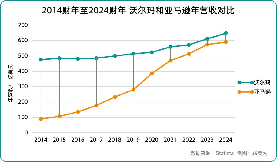 換句話說(shuō),如果兩家公司在2024年至2026年期間保持同樣的增長(zhǎng)速度,那么亞馬遜2026年的營(yíng)收可能會(huì)超過(guò)沃爾瑪,搶占其第一的寶座。在此情形下,沃爾瑪將如何應(yīng)戰(zhàn)?